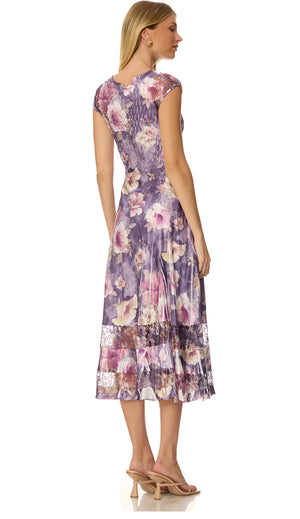 V neck charmeuse dress with Lace insets at shoulder and bottom
