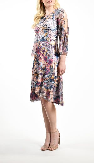 Slit Shoulder Chiffon Sleeve Dress