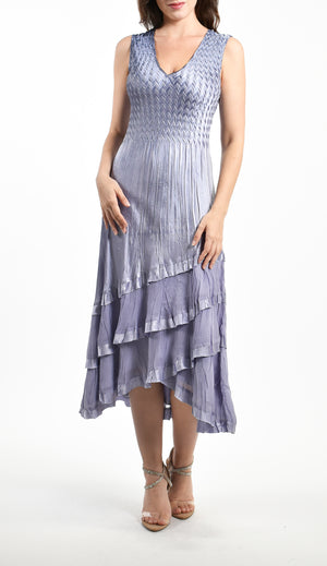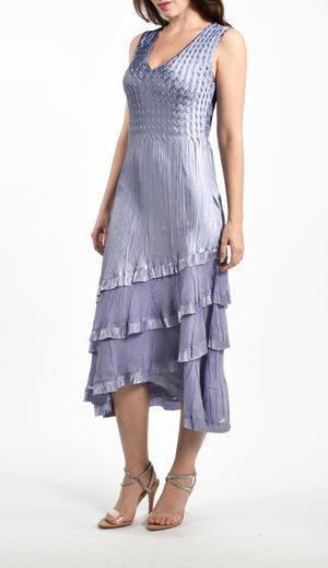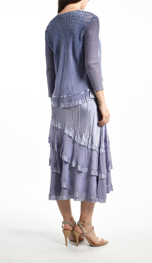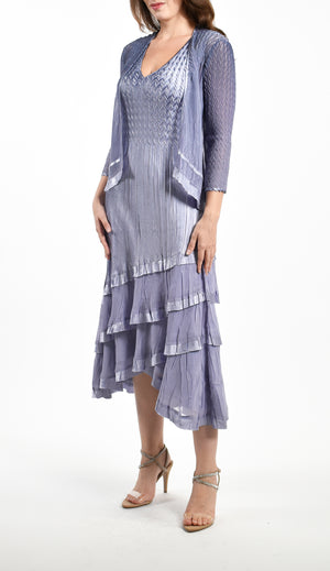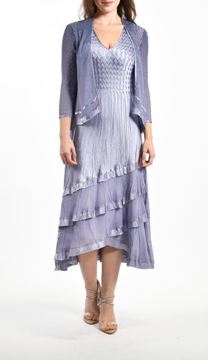 Luminous Lavender Grey Ombre charmeuse dress paired with an embellished chiffon jacket.