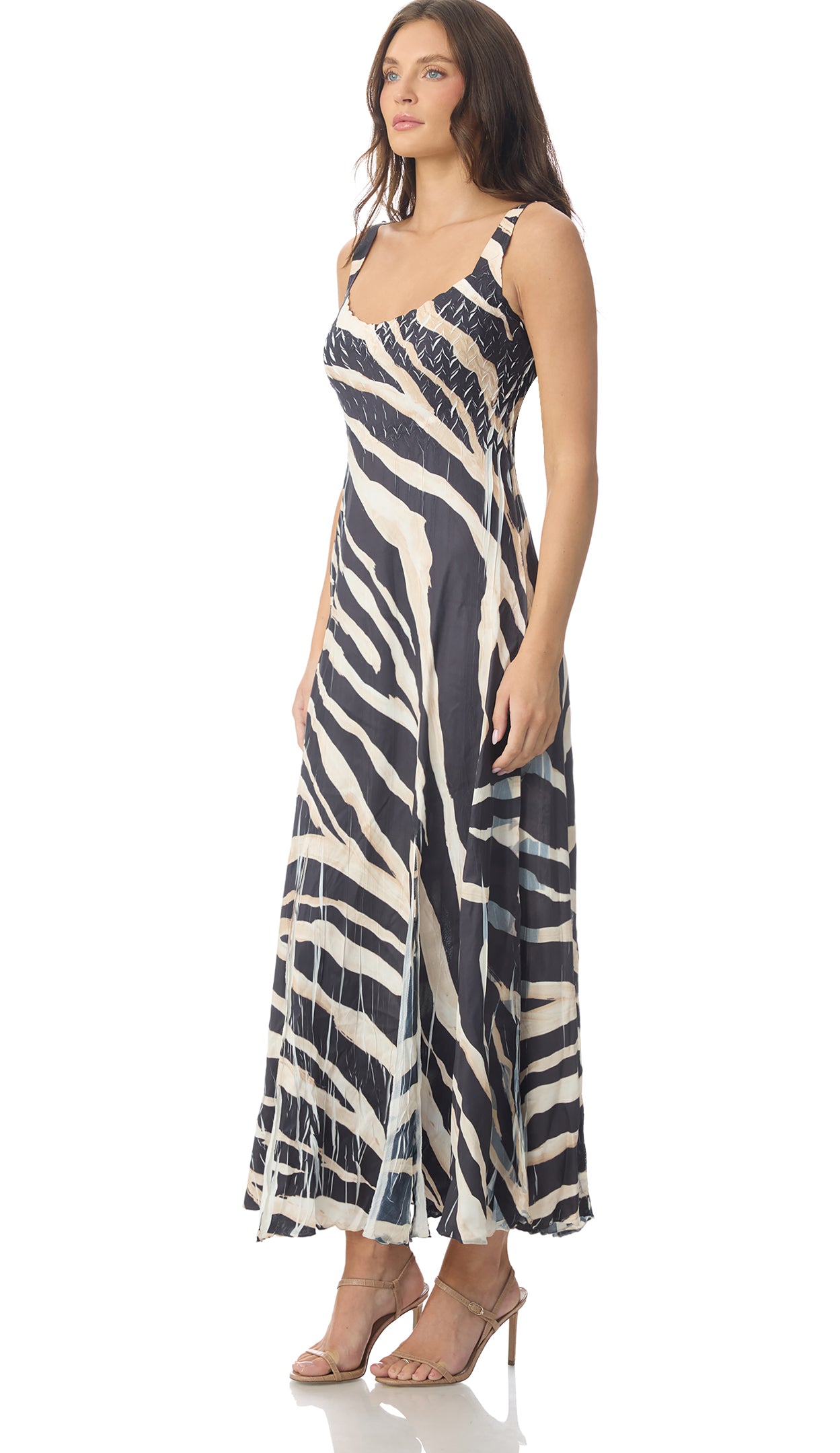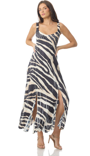 Broken Bough print  dress features dimensional pleating and slits along the hemline, making the perfect warm weather look.