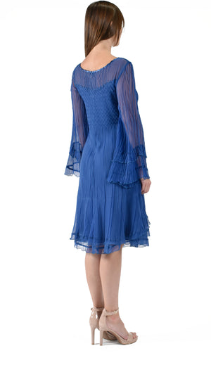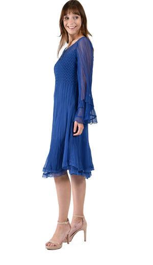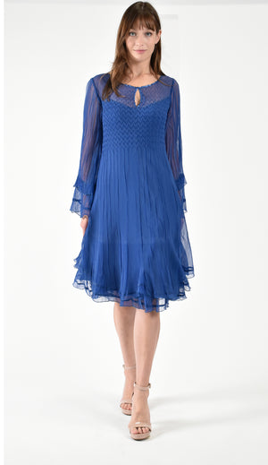 Keyhole Neck Long Sleeve Chiffon Dress.